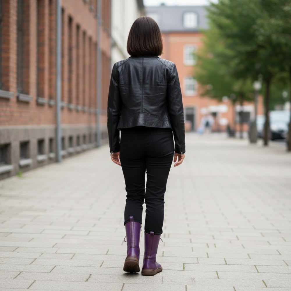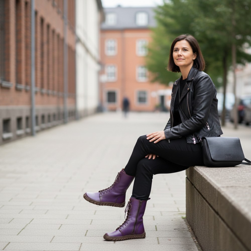 Doqs Purple yhdistää kahden maailman parhaat puolet: klassisten pitsi -saappaiden erottuva ilme, jolla on nykyaikaisten paljain jaloin kengän terveysetu.