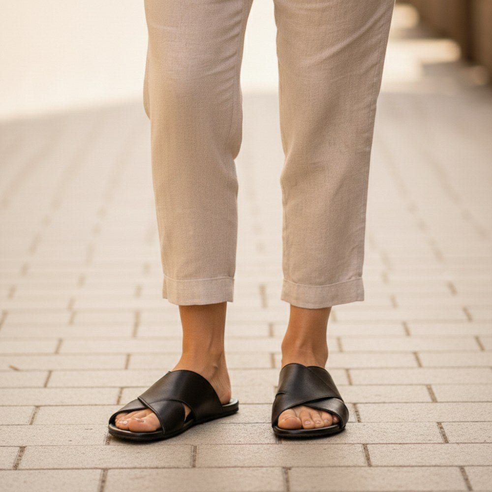 Kahdella risteyksellä nahkahihnalla, jotka tarjoavat parhaan pysäkin, voit yksinkertaisesti liukastua Manqa -mustiin sandaaleihin ja nauttia päivästäsi täysimääräisesti. Ei soljet, ei rappeutumista - vain puhdasta mukavuutta ja vapautta jaloillesi. Nämä sandaalit yhdistävät paljain jaloin kengän keveyden muodikkaan lisävarusteen tyylikkyyteen.