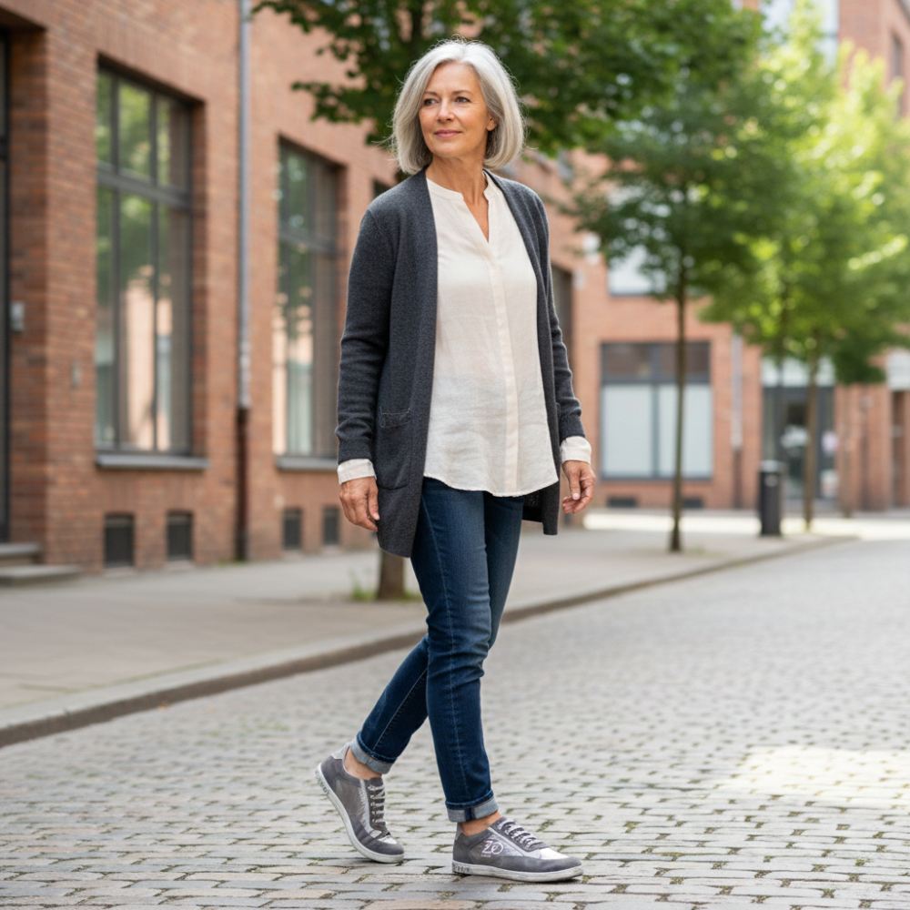 Harmaa mokkanahka sulautuu hopean sileällä nahkalla täydelliseen harmoniaan. Ton äänellä hienovaraisessa harmaa-hopeassa, voit yksinkertaisesti yhdistää tämän paljain jaloin kengän kaikkiin väreihin. Joskus klassinen pitkille housuille, joskus röyhkeä laihalle farkuille, OQTAV: lla olet löytänyt erittäin mukavan seuralaisen, joka esittelee sinut aina parhaalta puolelta.