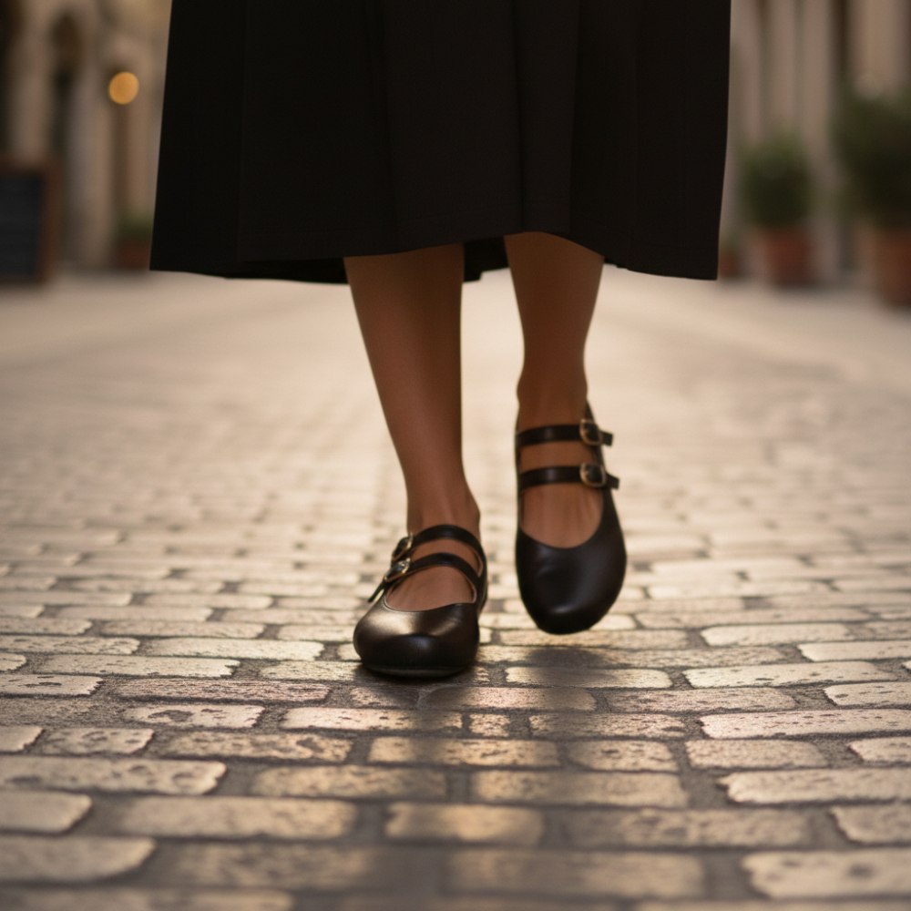 Puku Qomet Black, balleriinikenkä, eleganssi määritetään uudelleen.