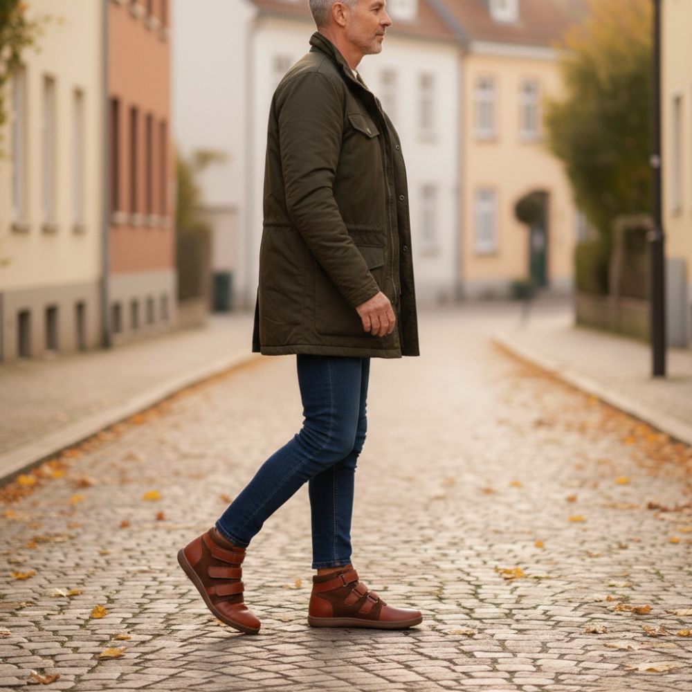 Ulkokumipohja nolla kantapää, mikä lievittää selkärankaa ja suojella niveliä, tukee luonnollista asentoa