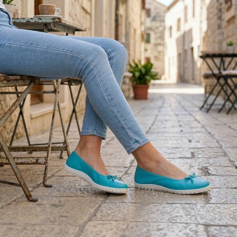Suqar Capri - nimi on ohjelma! Sininen Nappa -nahka muistuttaa Välimeren kauniita värejä. Ballerina, jolla on naisellinen koristemainen silmukka, on myös kuin karkki, jota ei voida vastustaa.