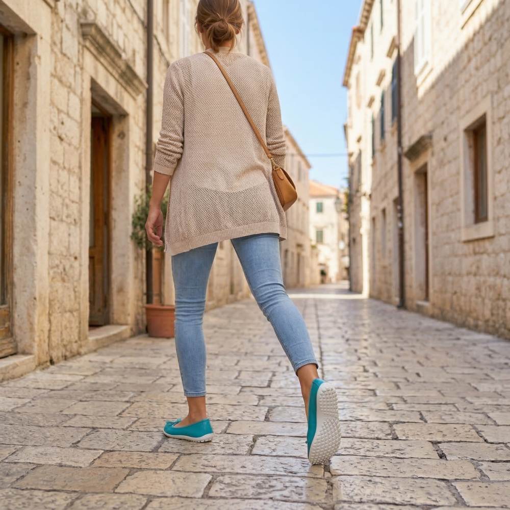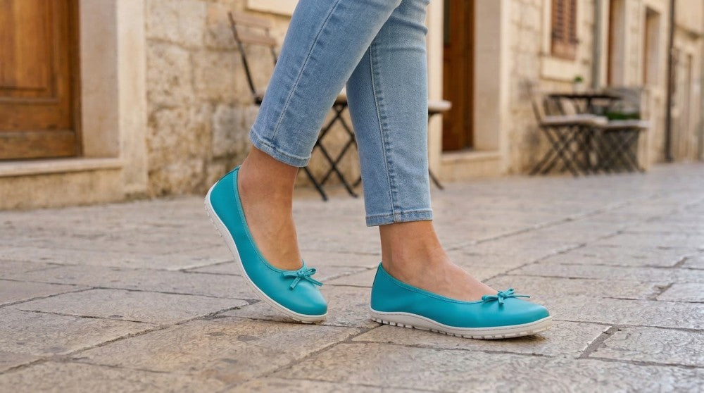 Erityisen paljain jaloin lenkkarien pohjalla juokset uskomattoman mukavasti mäen ja kiven yli tässä baleriinissa etkä väsy edes pitkän kävelymatkan jälkeen. Jalat tuntuvat täysin mukavilta tässä paljain jaloin kengissä.