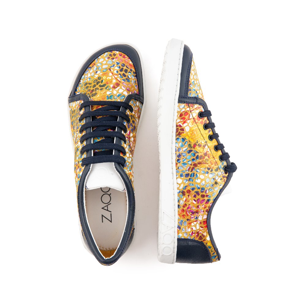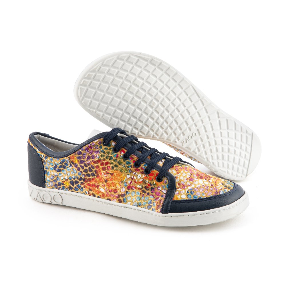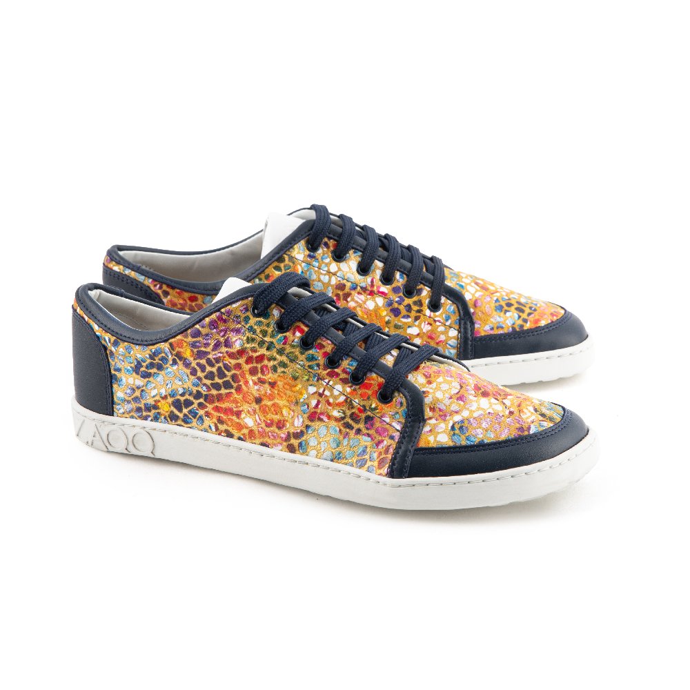 Valmistettu korkealaatuisesta Nappa -nahasta värikkällä kukkakuviolla ja offset -yksityiskohdilla tummansinisellä, tämä paljain jaloin kenkä on ehdoton silmä -kiinnitys! Mutta tämä lenkkari on myös ilmiömäinen jaloillesi - se tarjoaa paljon tilaa varpaille ja samalla turvallinen nilkkojen pitäminen.